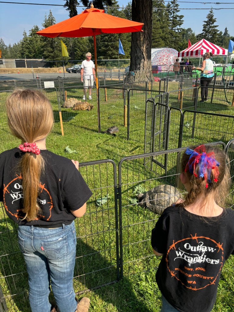 The fair is a long, hot weekend and the two littles only put in intermittent appearances. When they did it was more for the sake of running around and looking at the animals. We saw sheep, goats, piggies, cats, dogs, poultry (of course) but the real star of the show, as far as Winnie is concerned, are the “tows.”