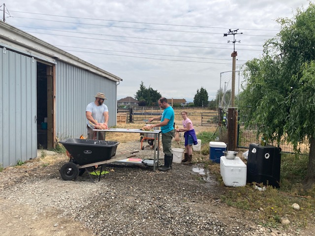 Thursday, the Feast of the Assumption, was a very busy day. We slaughtered two ganders, two roosters (for stew meat), five older hens (also for stew meat) and 27 Cornish cross meat birds.