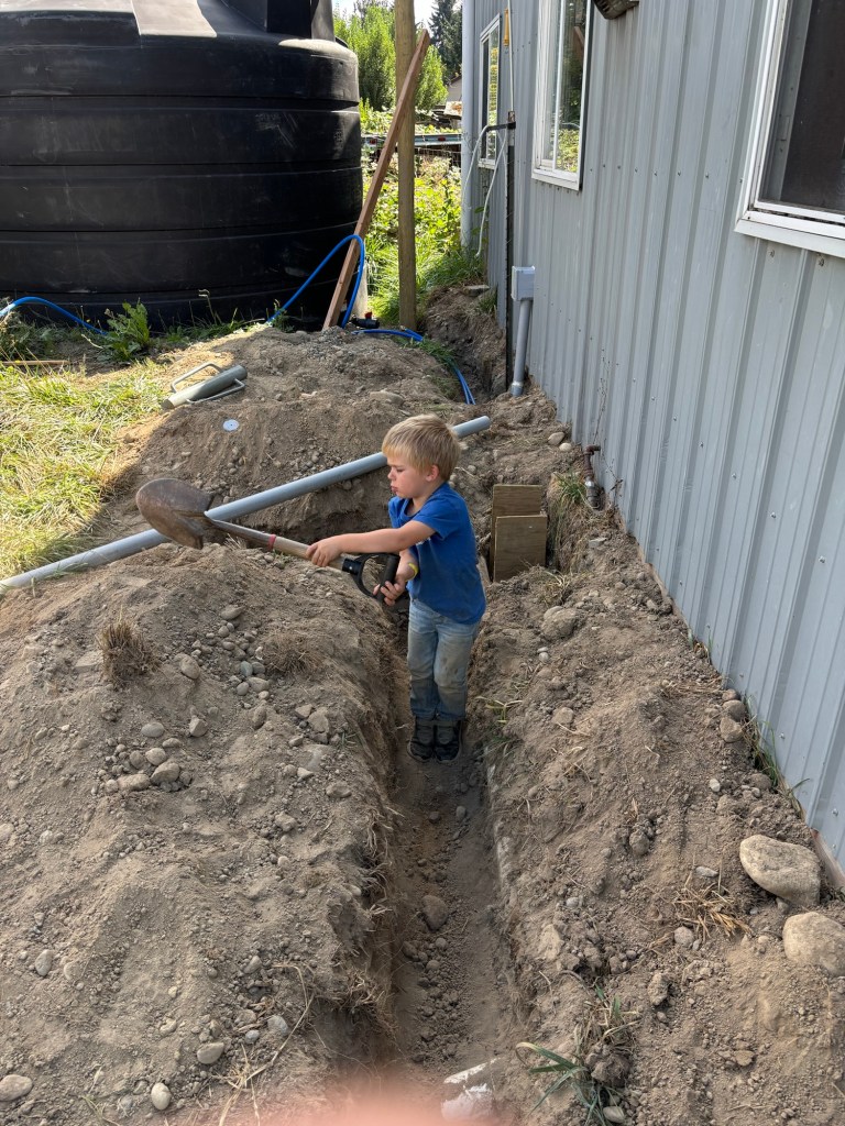 There are two kinds of work that need to be done on the farm. First, there is what might be called infrastructure work. This is work, mostly one-time projects, that hopefully set the conditions for life and work on the farm for years to come, everything from setting up the workshop to running water and fencing out to the pasture.
