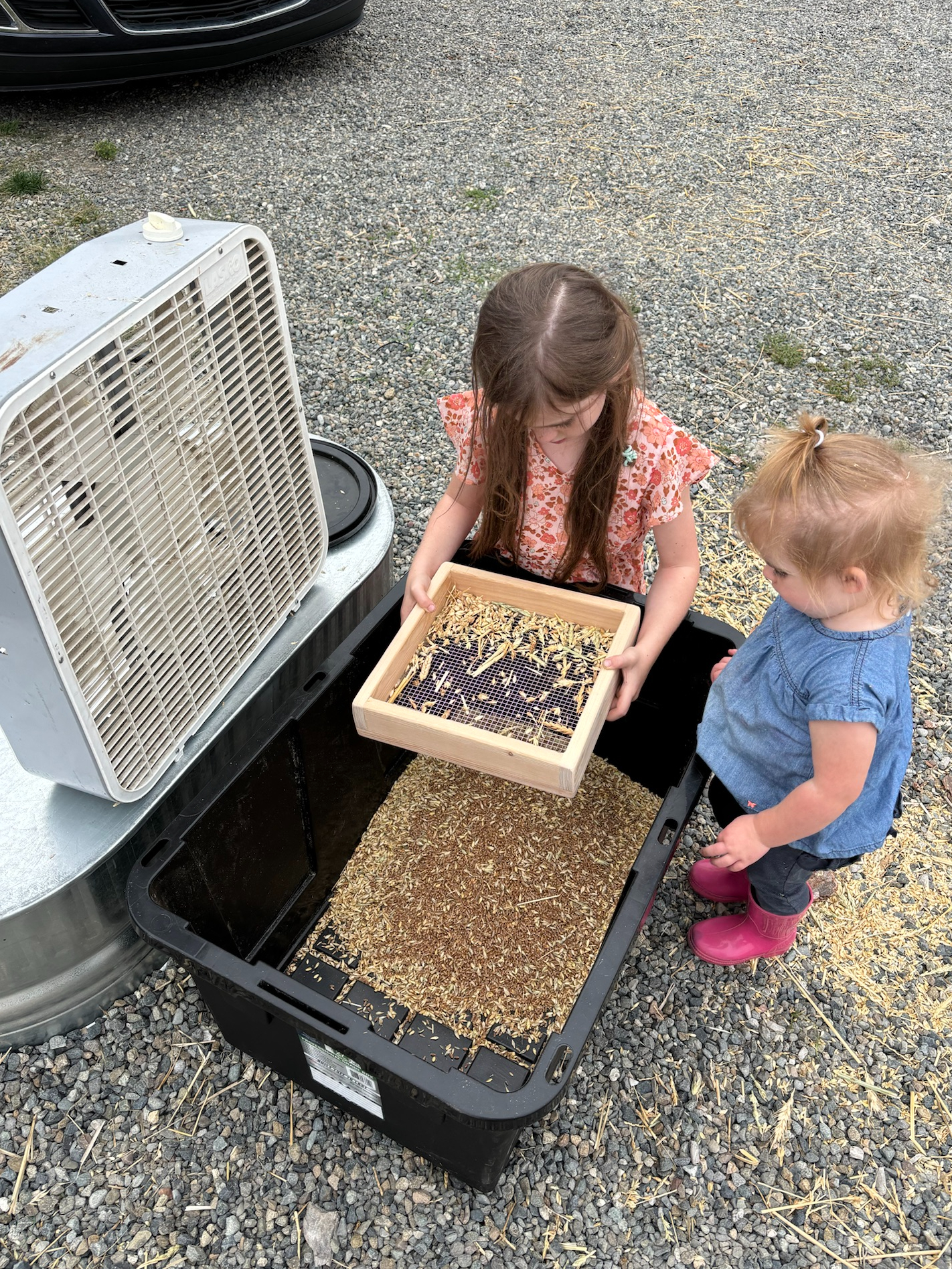 Our seed cleaning screens from Siskiyou seeds came on Monday, so on Tuesday we completed the winnowing of the wheat. As it turns out, it was also the final threshing.