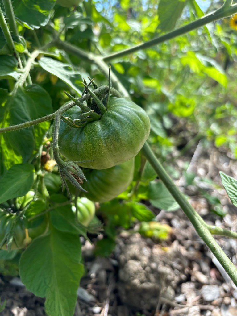 Tomatoes just beginning to turn, corn beginning to tassel out.