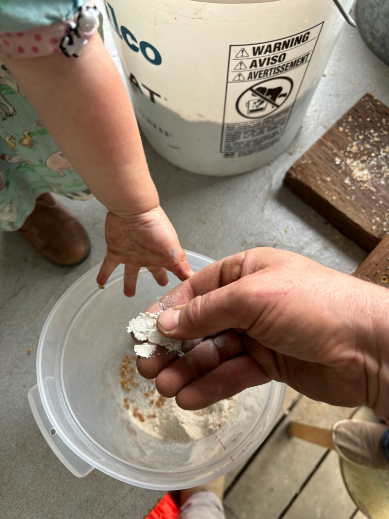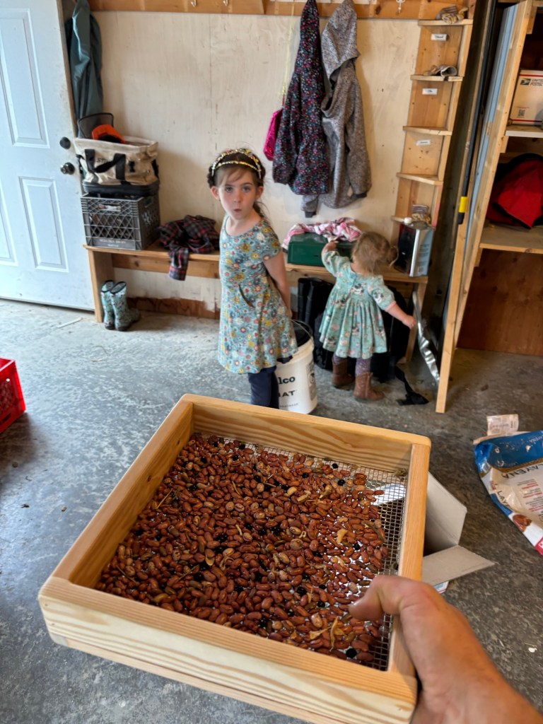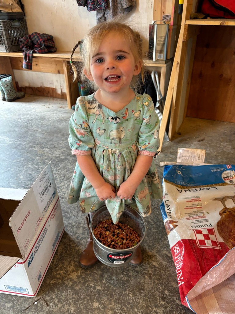 Fortunately, we have a bucket of 70+ year old feed corn that Jerry gave us, and we ground that up into meal for the chickens.