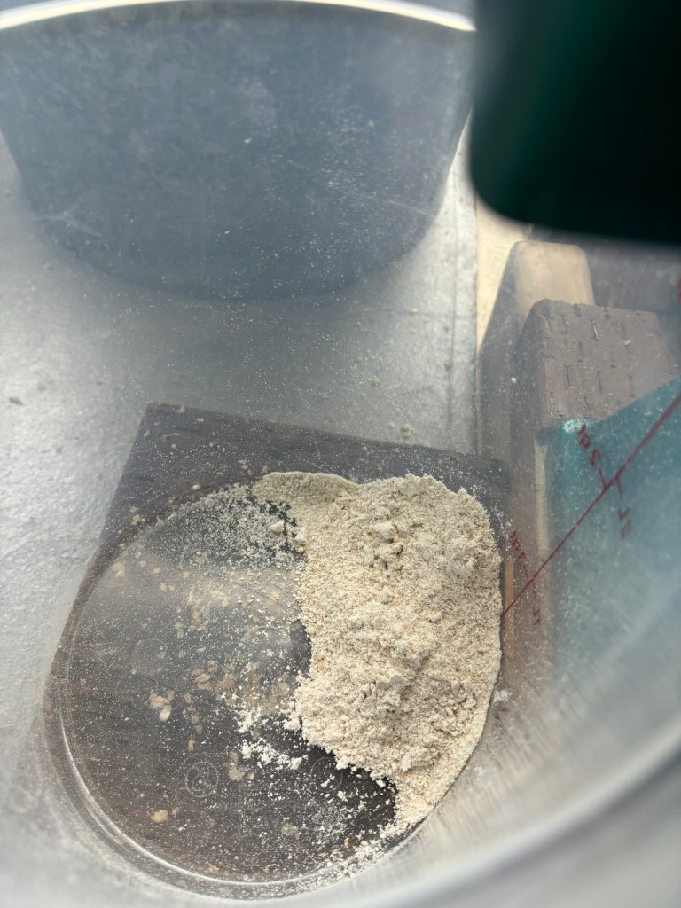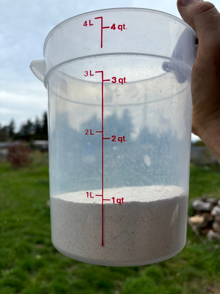 In about 20 minutes of grinding, this is what we produced, probably about enough for two loaves of bread. Stay tuned to see what we did with the flour next.