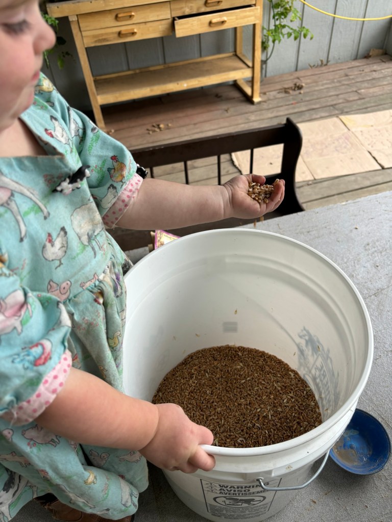 Also, don’t let the baby play in the wheat berries. She discovered a shortcut…