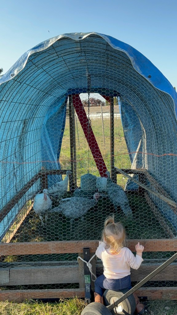 Some of the paddocks are set up here, but we are moving the turkeys around to fall in behind the cows and sheep in the rotation.