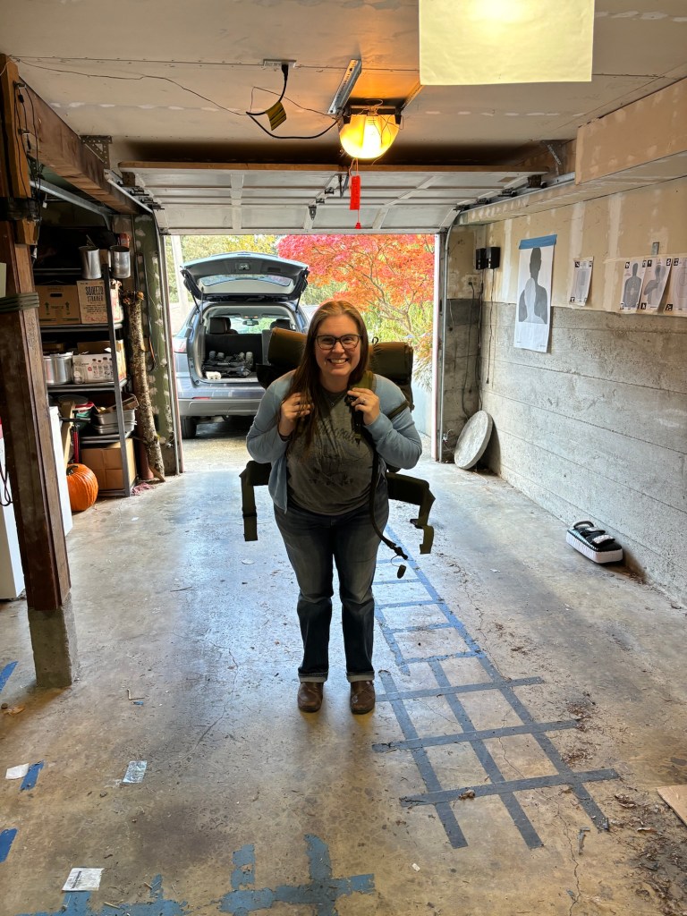 Then the weekend of the 18th through 20th was a drill weekend. Mommy had to retrieve Daddy’s rucksack from the farm, and she was happy to show him that she can heft and carry an 80Lb rucksack.