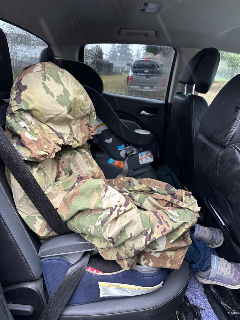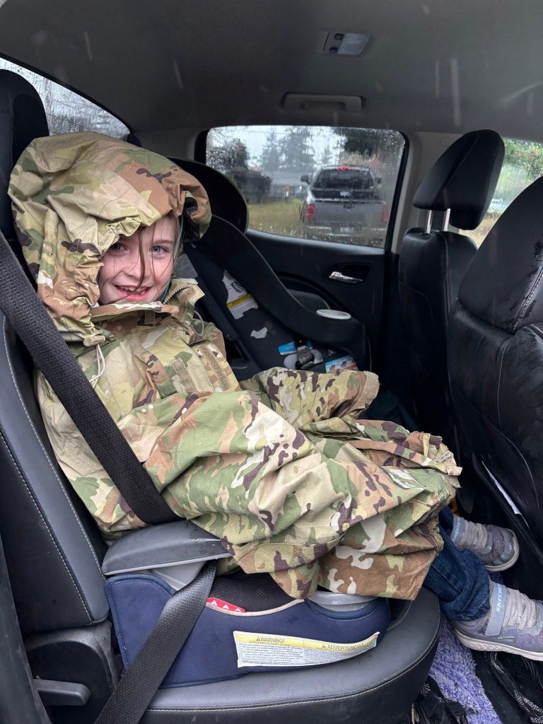 Ellie-belle got to come out for the last day of drill to help Daddy clean guns (seriously, this is one of her favorite things to do). Unfortunately, it was raining cats and dogs that evening. Not to worry…