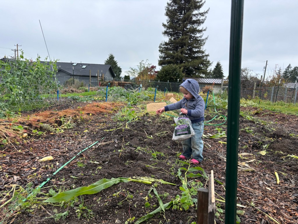 We spread a winter cover crop. Soil temp is 50, kind of borderline whether it sprouts or not. If it does not, we’ll have to cover the beds with muck over the winter to reduce the runoff.