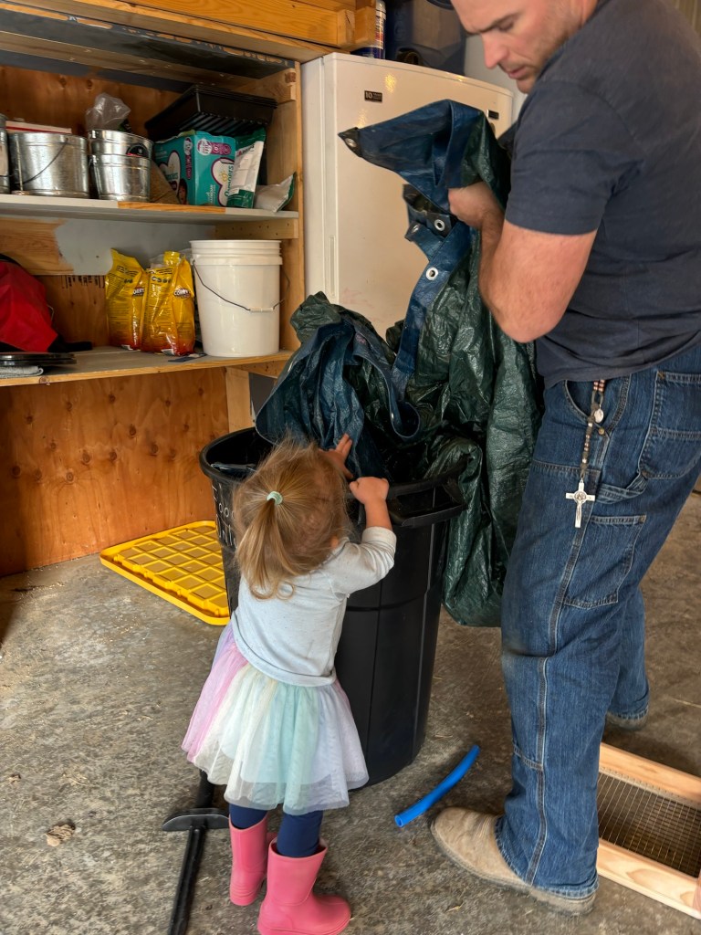 Working out of the garbage pail turned out to be easier than picking it up off the tarp.