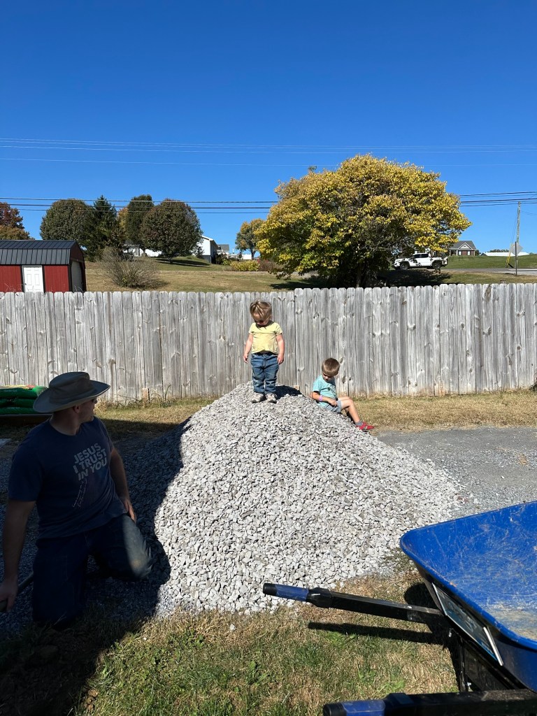 And that was so exciting they forgot all about the gravel pile. Also, the grownups confined them to the porch so they couldn’t get on the gravel pile.