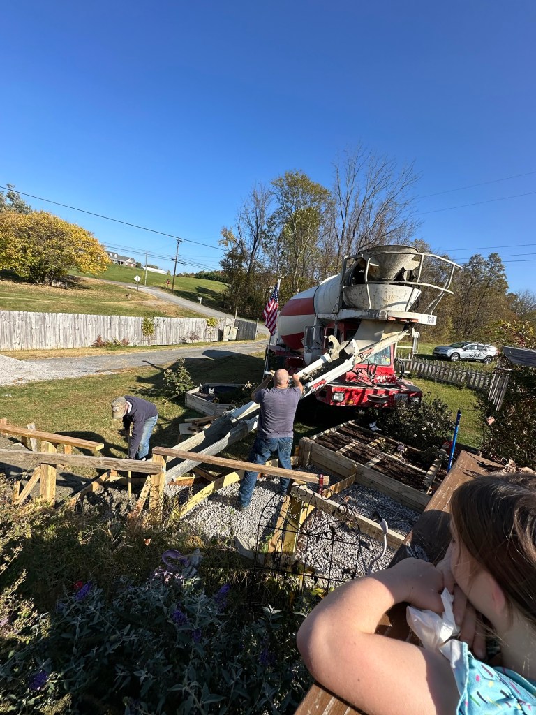 The rest of the walk was about two hours of bent-over work, often balancing on 2×8’s extended across the wet pour, but we got it done.