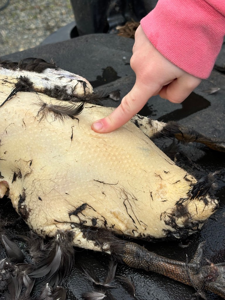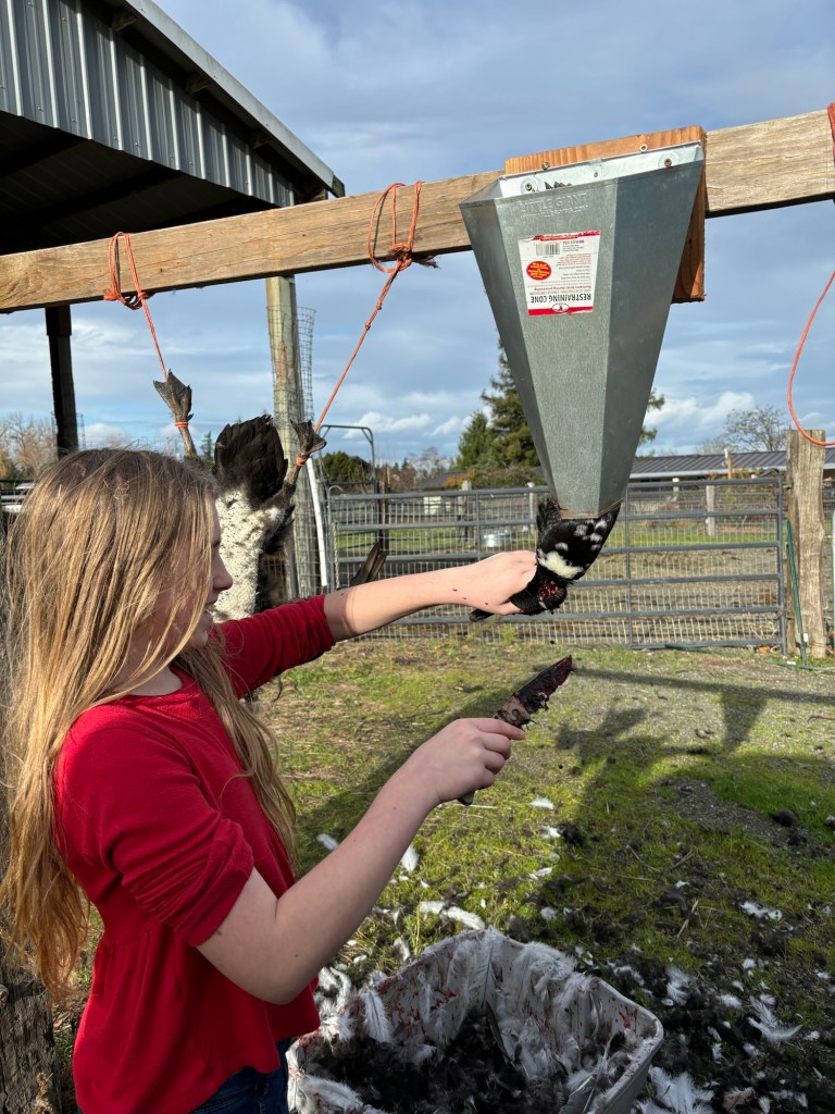 With minimal demonstration, she got to work removing the neck skin and separating the crop and trachea.