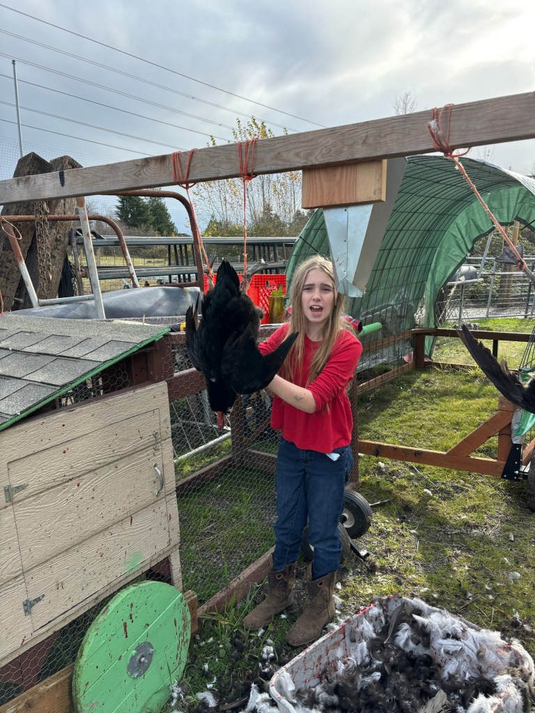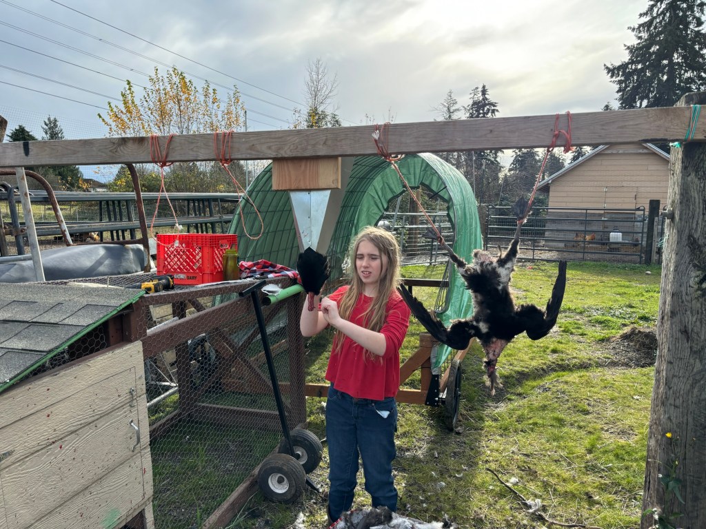 After a couple of ducks, Evie asked permission to kill and butcher a duck all by herself. Since she is nine, almost ten, I said yes, although she had to have me there for each major step. She was super excited about it, and ran off to catch her own duck.