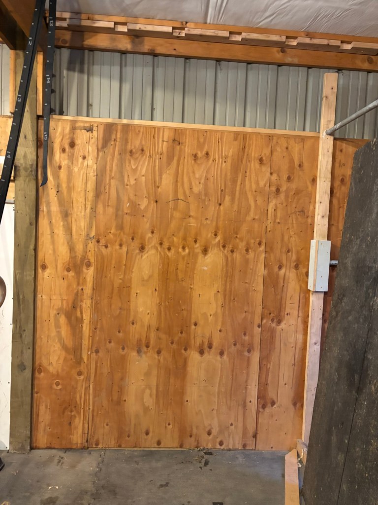 For $50 and a few hours of work, a perfectly ordinary plywood wall in the shop can be transformed from this…