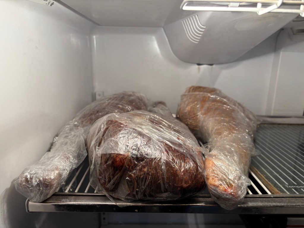 On day 3 I had to put a tub under the meat to catch the occasional spare drip.