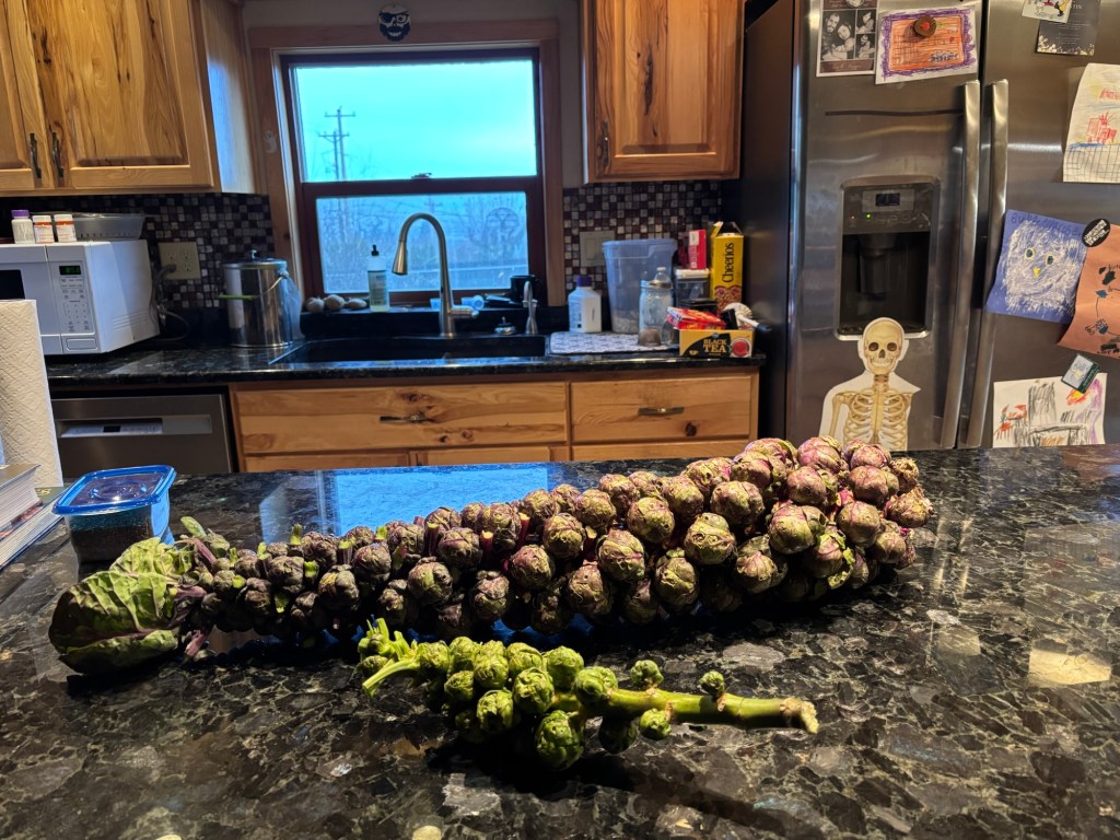 Monday we tried to get a day of work done on the Farm, but Seppi was not his usual, cheerful, energetic self. He almost didn’t want to carry the brussels sprouts.