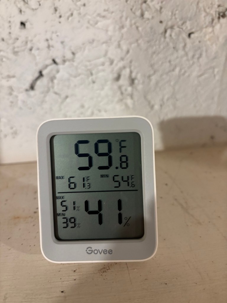 Hung 1/18/2024 @ 60 degrees F, 50% humidity.