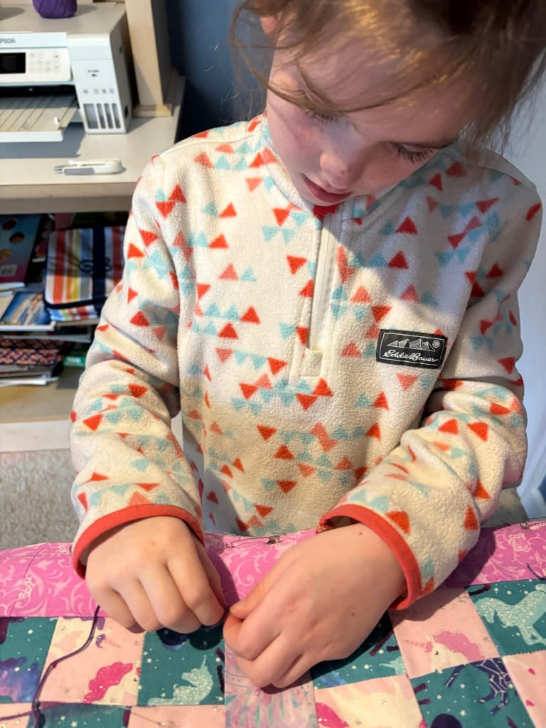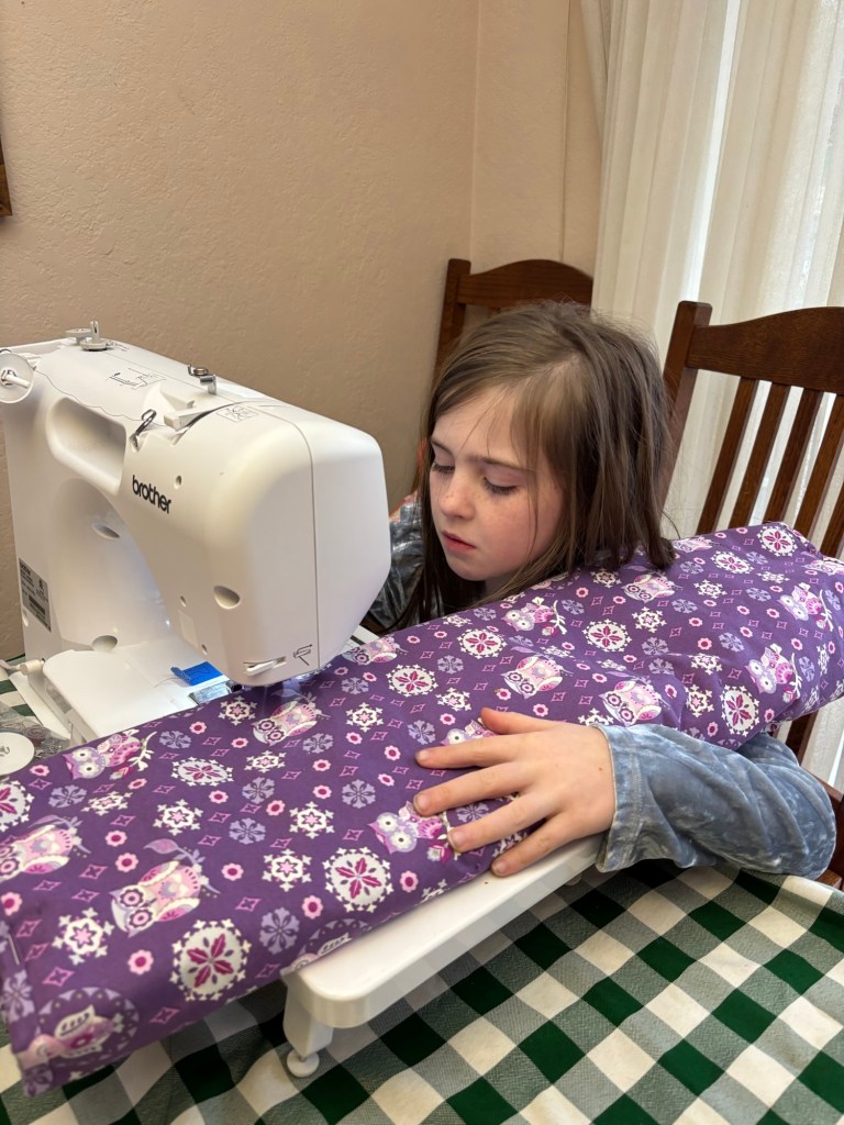She kept asking us to letter her turn up the speed on the sewing machine, but when she does that she has a hard time keeping on her line, so we kept her in “turtle mode.”