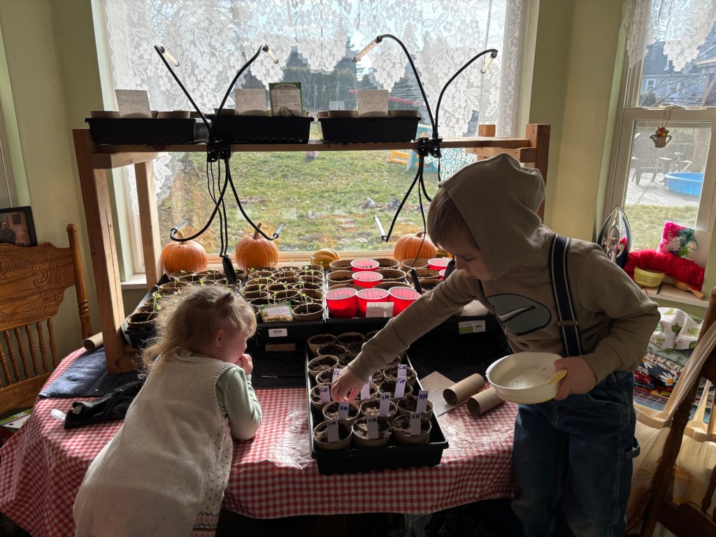 We are only starting paste tomatoes this year. We don’t need more than one or two plants of slicing or snacking tomatoes. For that it makes more sense to buy starts from the local farm store, rather than two packets of seeds.
