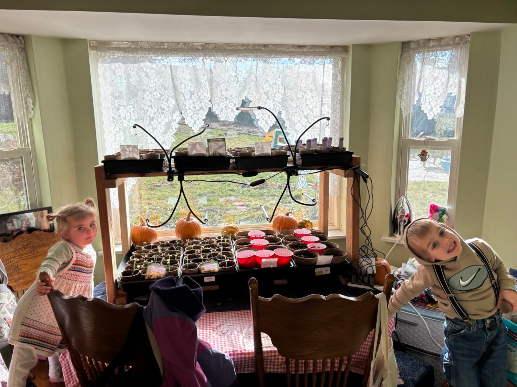 Despite not feeling good on Monday, Farmer Seppi started bok choi, swiss chard, celery (way overdue) and tomatoes.