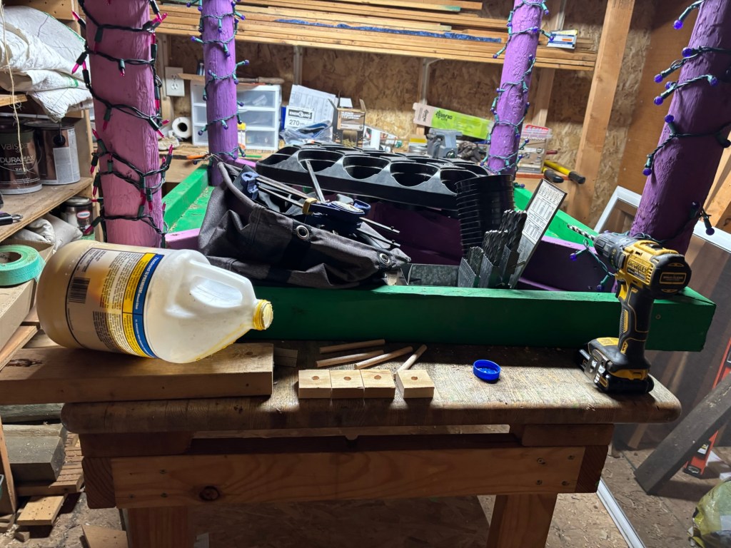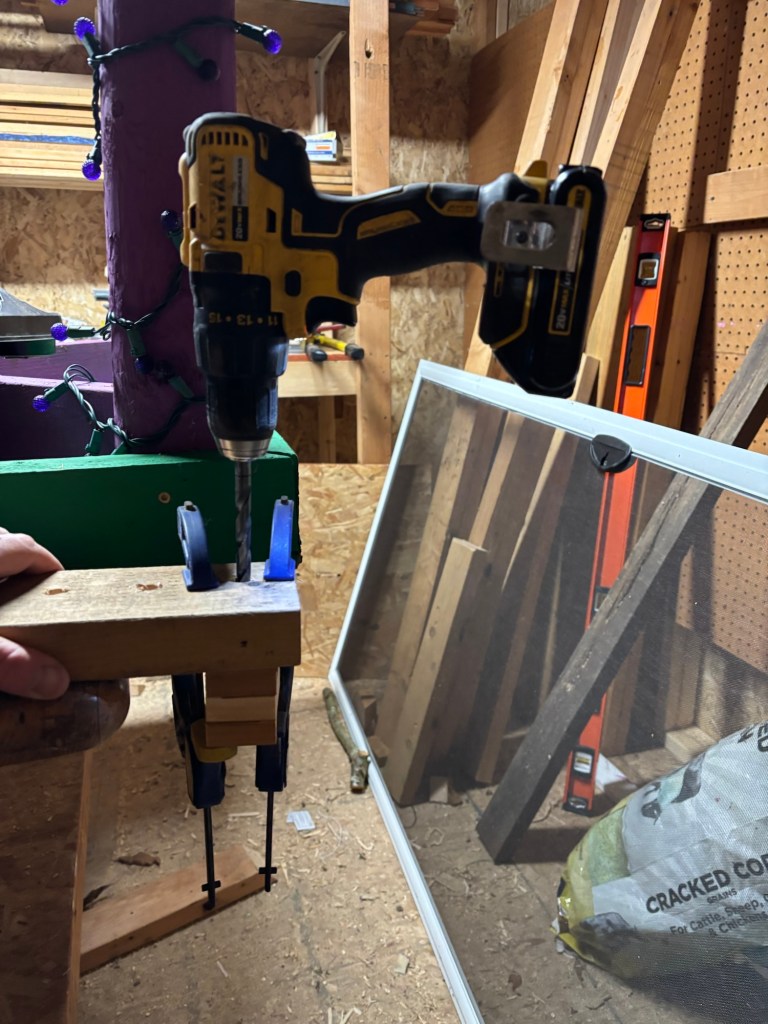 Then we needed a jig to make sure our holes were exactly perpendicular.