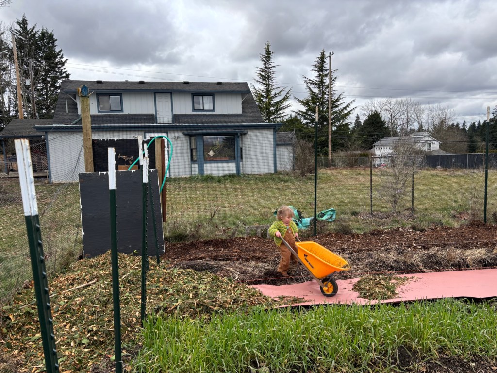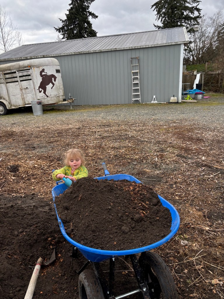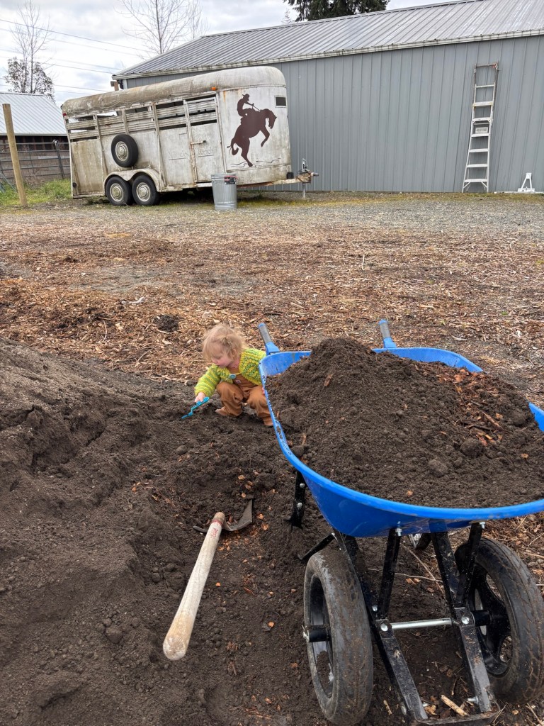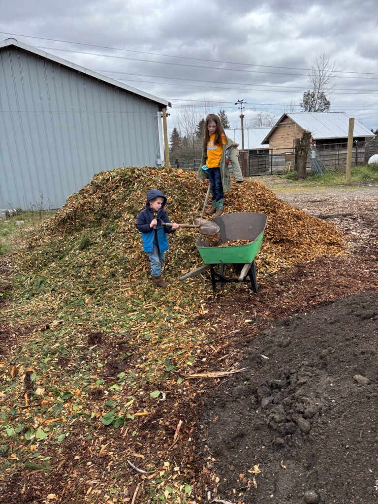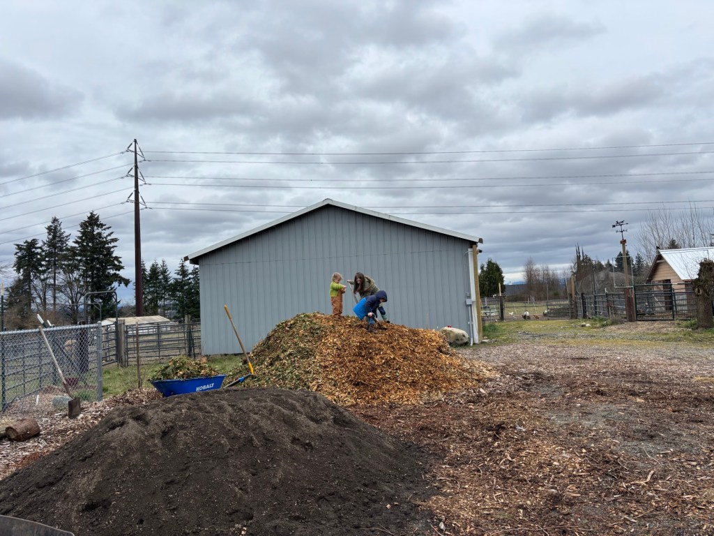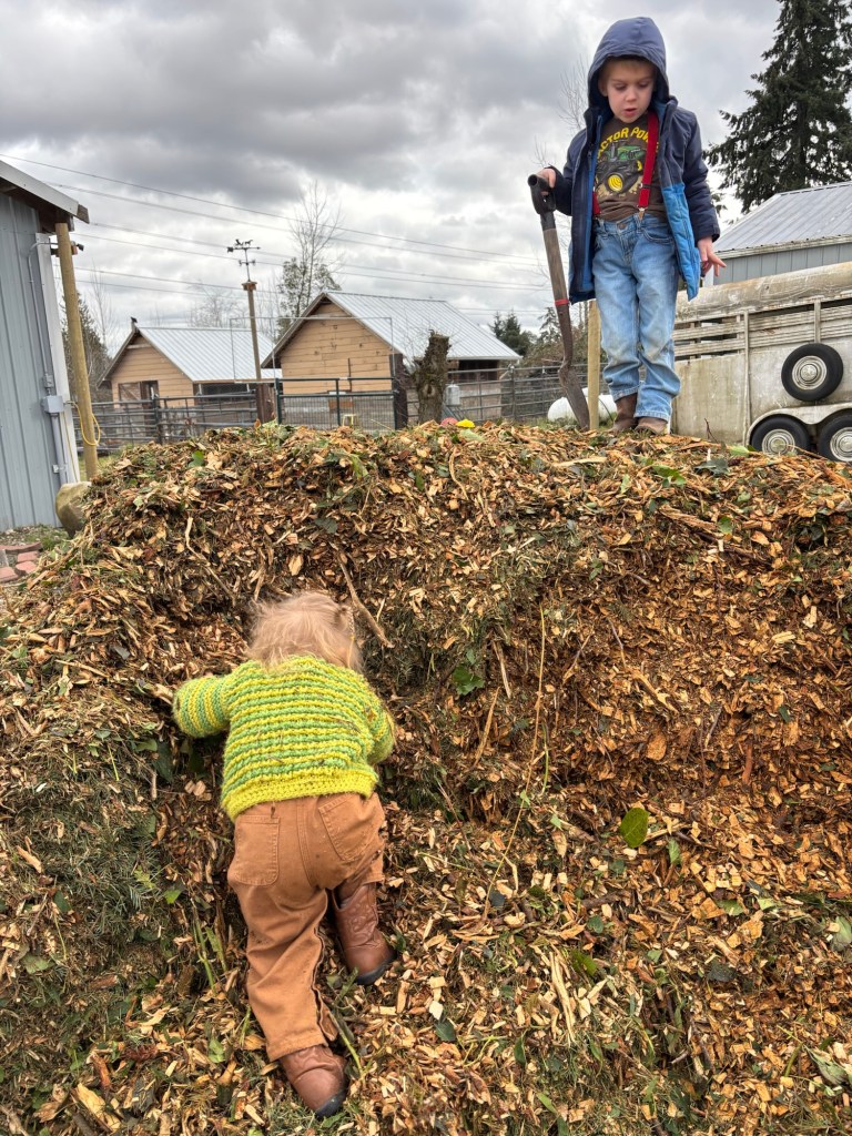 A big pile of wood chips is one of the most fun things on the farm. Especially when they were told they couldn’t play in our pile of topsoil, they were relieved to find that they are still allowed to play in the wood chips.