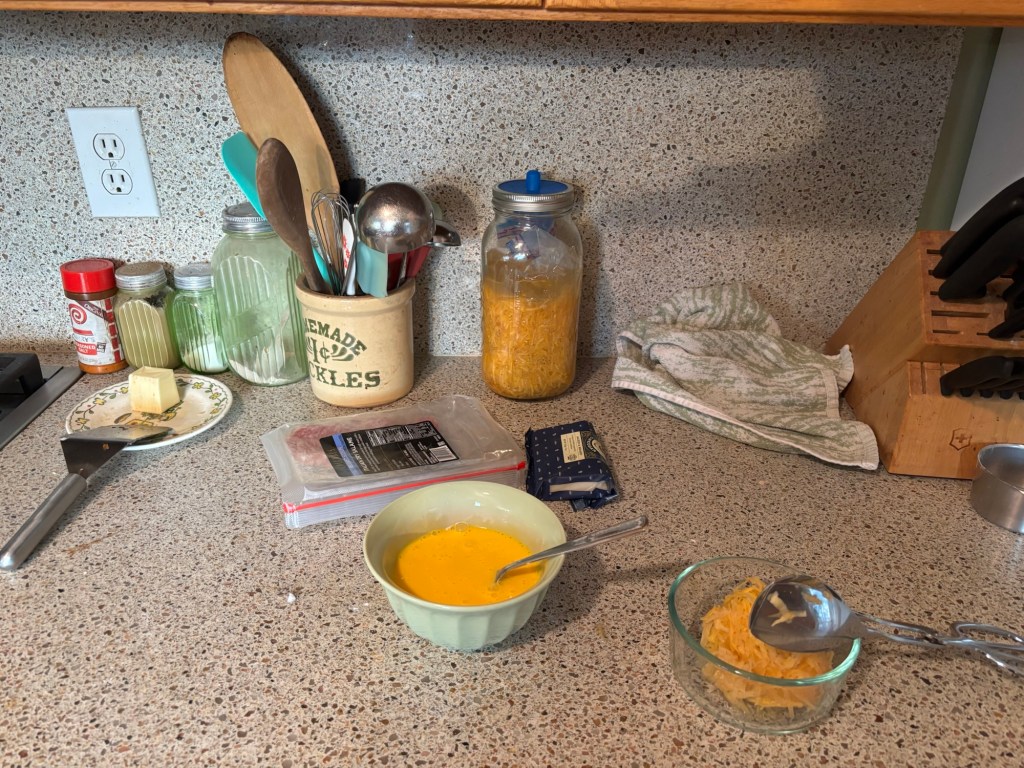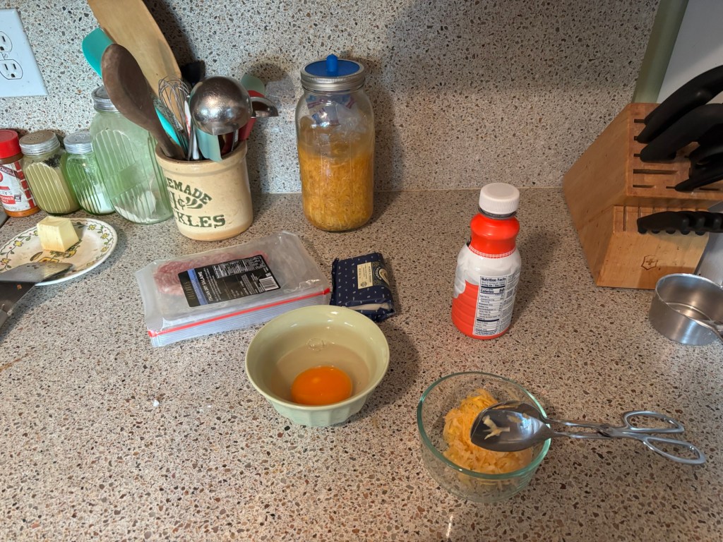 Cream, cheddar, salami, and a cup of fresh sauer ruben. (The sauer ruben is at 9 days fermenting, with just a tsp of pepper and some carraway in this batch. So tasty!)