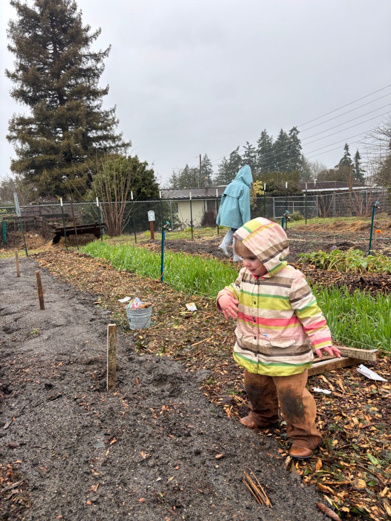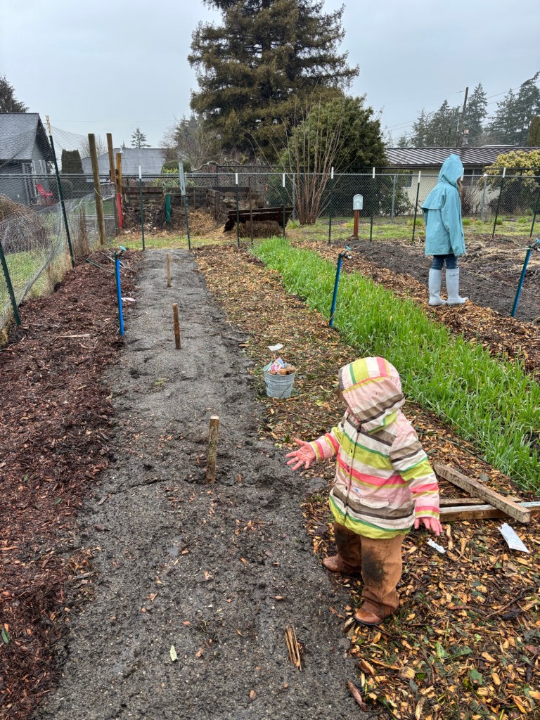 Parsnip seeds and carrot seeds are too small to be worth planting individually using the form, so we just scatter them thinly. Or not so thinly in Winnie’s case.