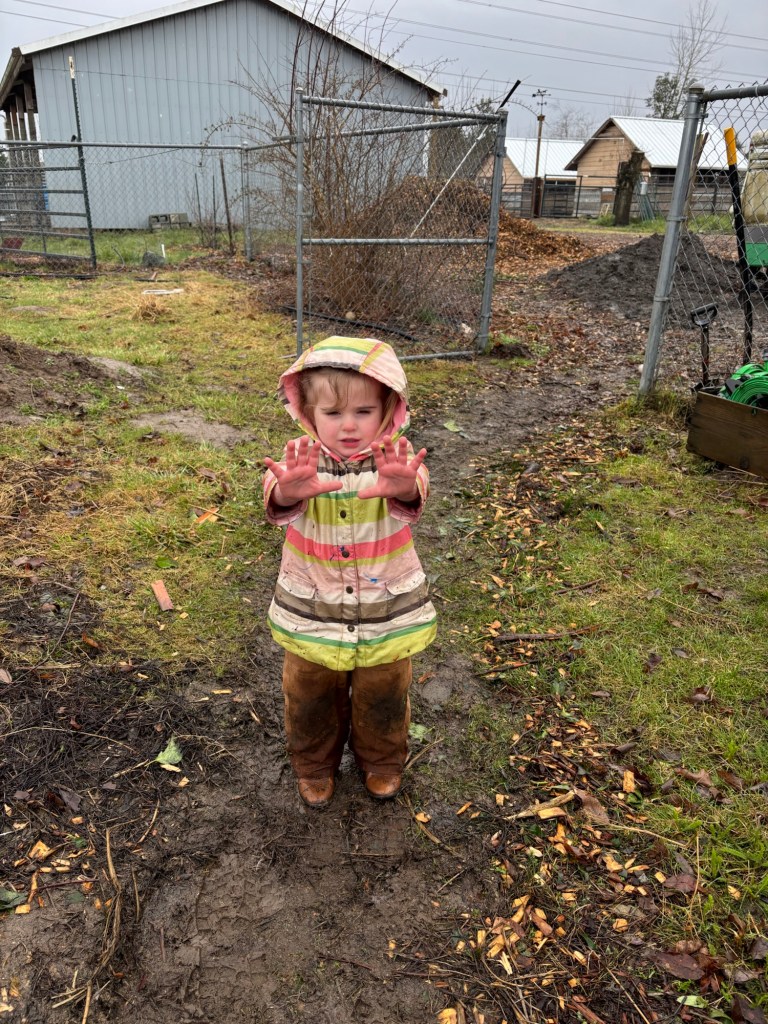 Those carharts and stripy insulated rain coat were Evie’s once, and they are still going strong.