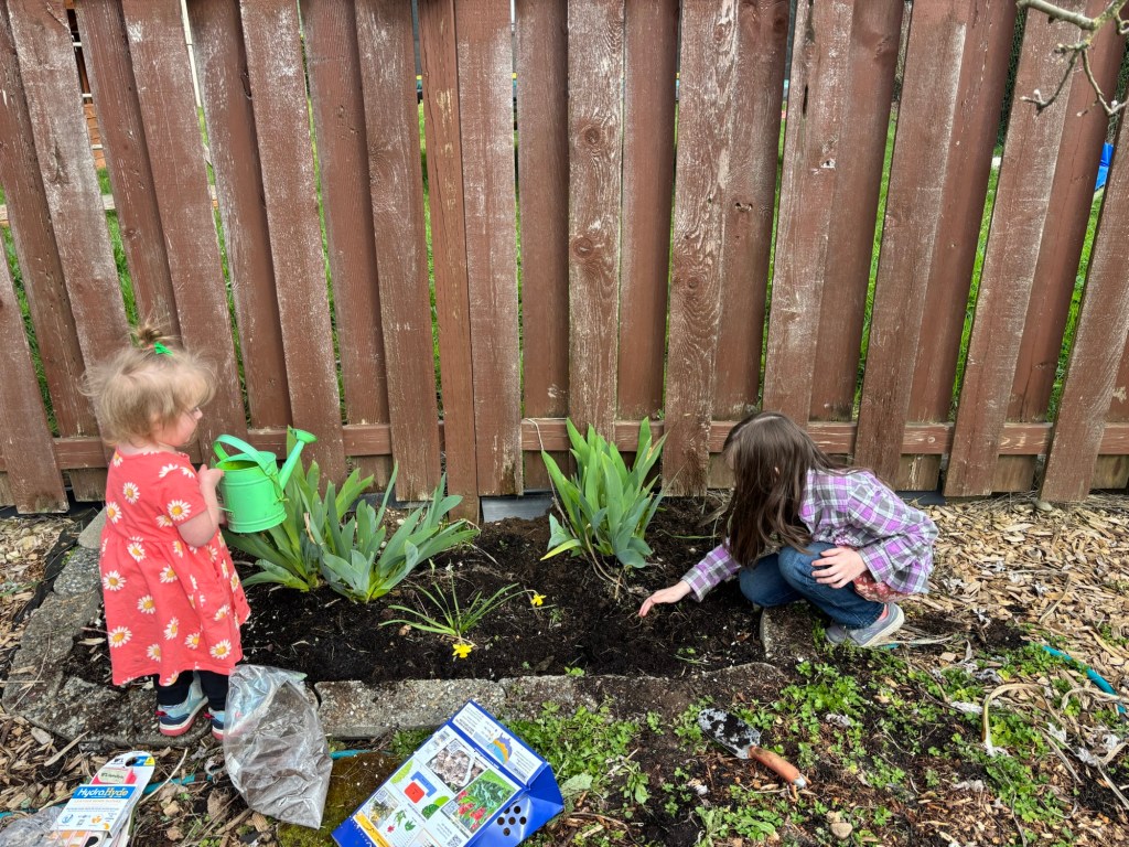 Ellie went out and weeded the grass out of her little flowerbed this week, all by herself without being reminded. So we got her some spring bulbs from Costco.