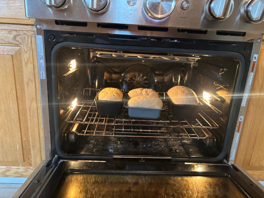 This particular recipe came from a book we got from Grandma Betty (a.k.a. Gigi) who apparently bought it back in the 90’s. Unlike our other recipes which make either two or four loaves, this one makes three, which is perfect for us.