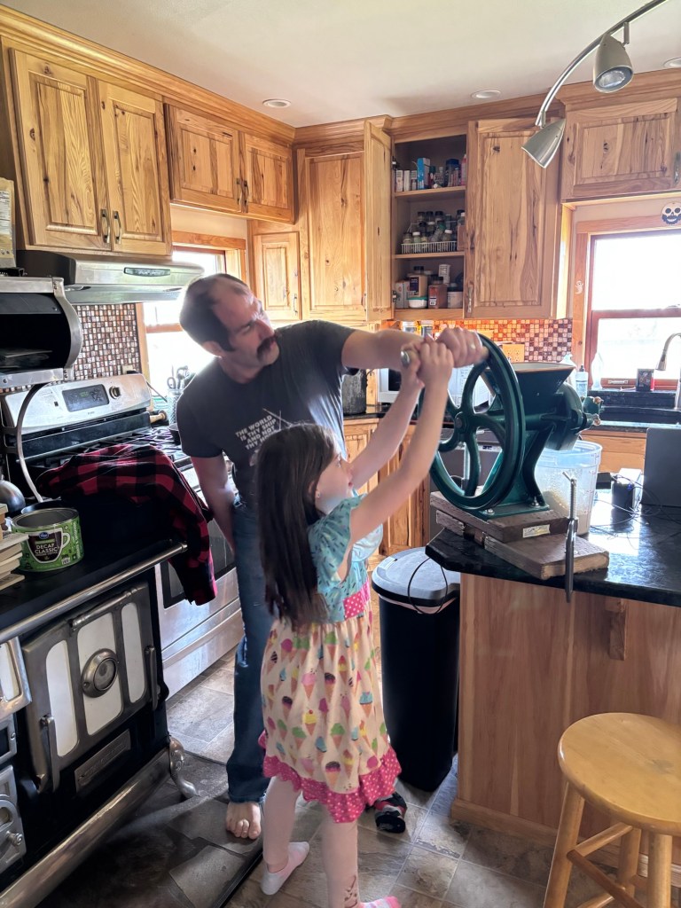 We should’ve taken pictures of the bread, baking process, and the finish result, but we did not. Next time. You’ll just have to trust us for now that it was delicious. The biggest difference between baking with fresh ground flour and baking with store-bought flour, is the texture. The fresh ground flour is a bit coarser, and much stickier.