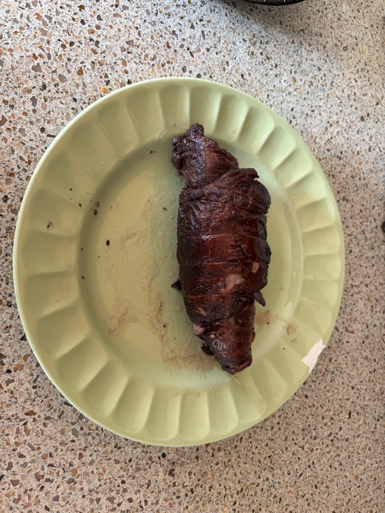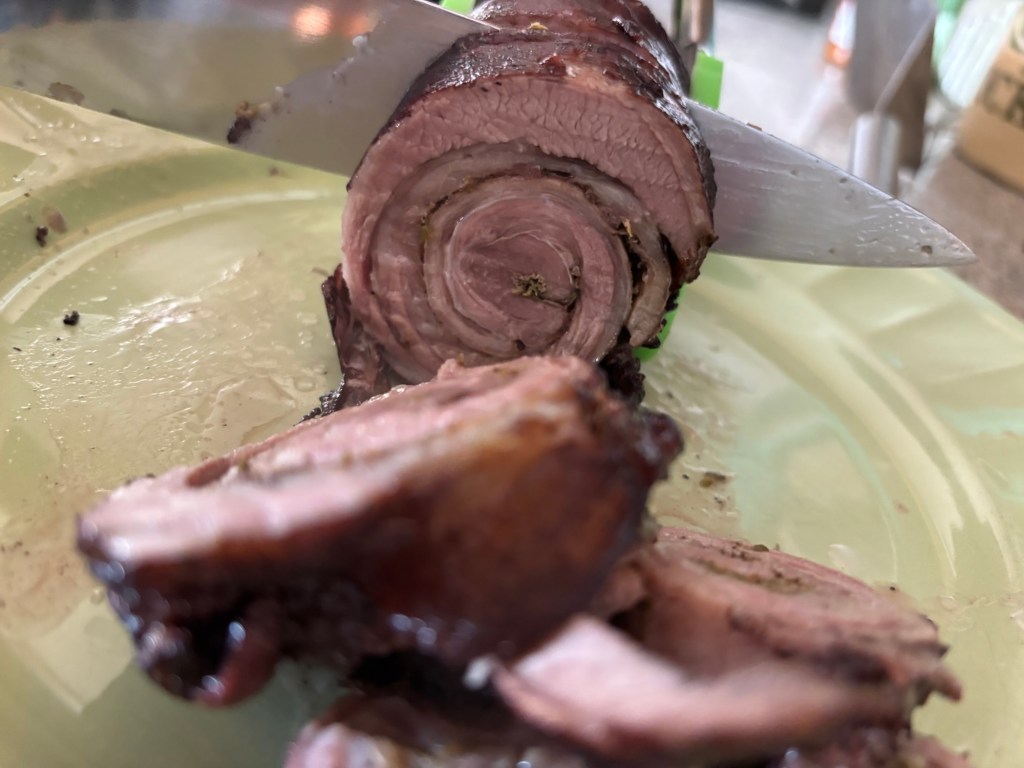 I was amazed at how filling it was, I could only eat four or five of the medallions. Two rolls would probably have been enough for a full family dinner. Definitely something to remember next time we butcher sheep, this is a very easy and tasty recipe, so the boneless Lamb breast is a sustain.