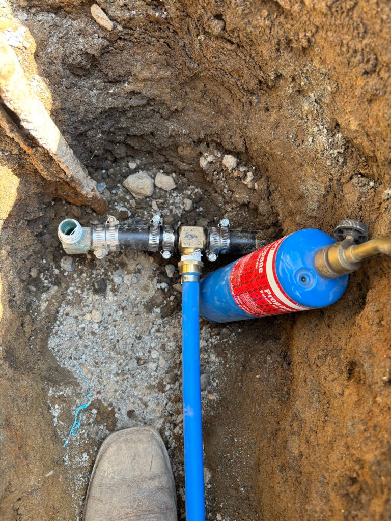 Taking off the old hydrant is easy. Just pin the elbow on the bottom and twist it off. I took the extra step of cutting the poly pipe and installing a 1″ Poly to 3/4″ PEX tee.