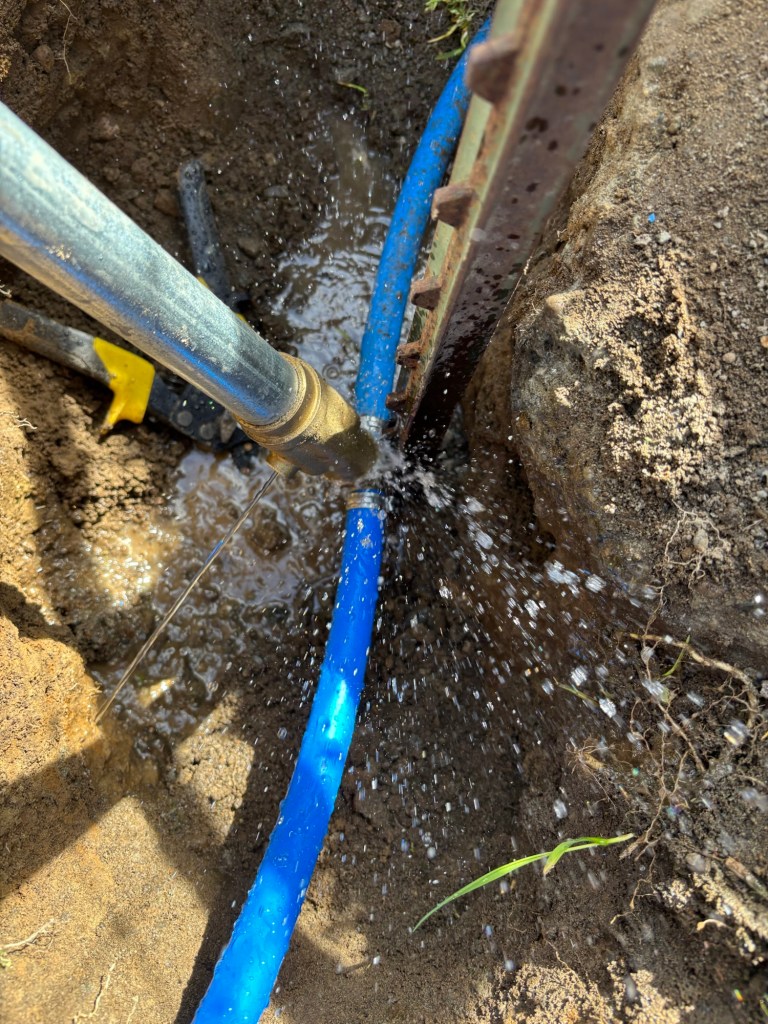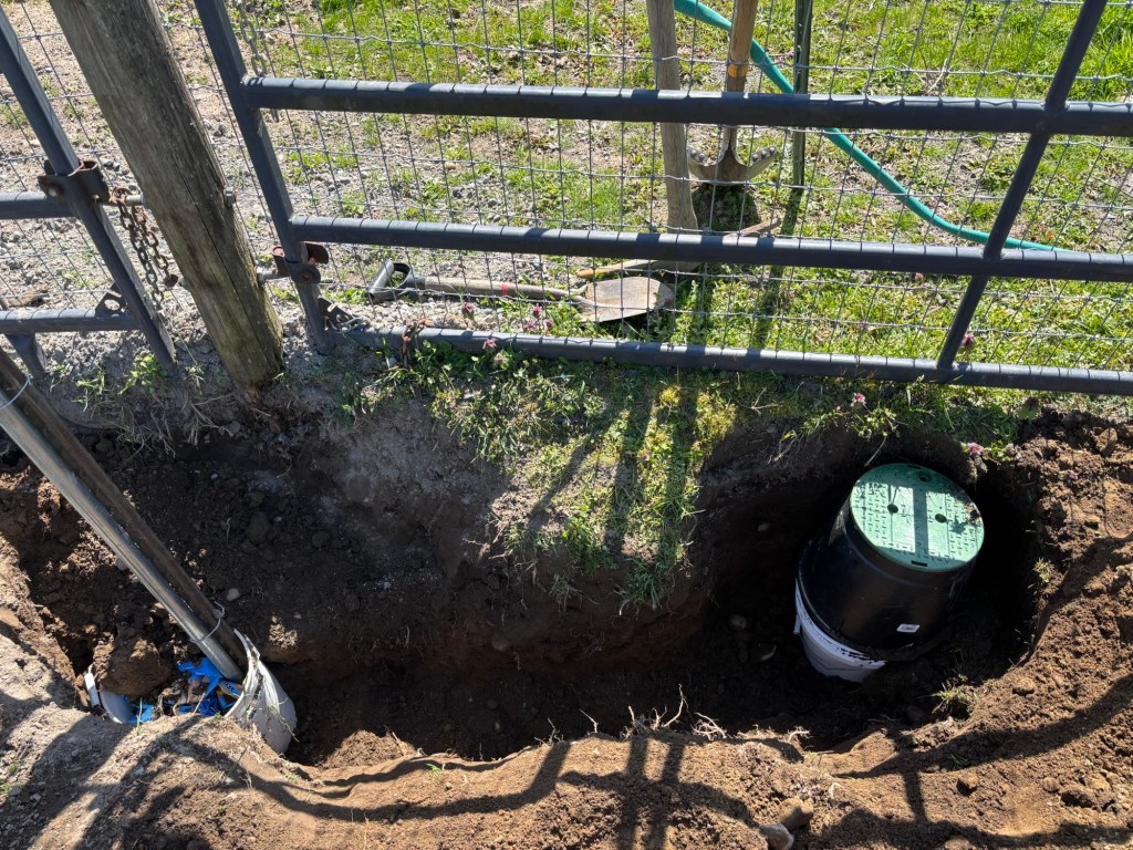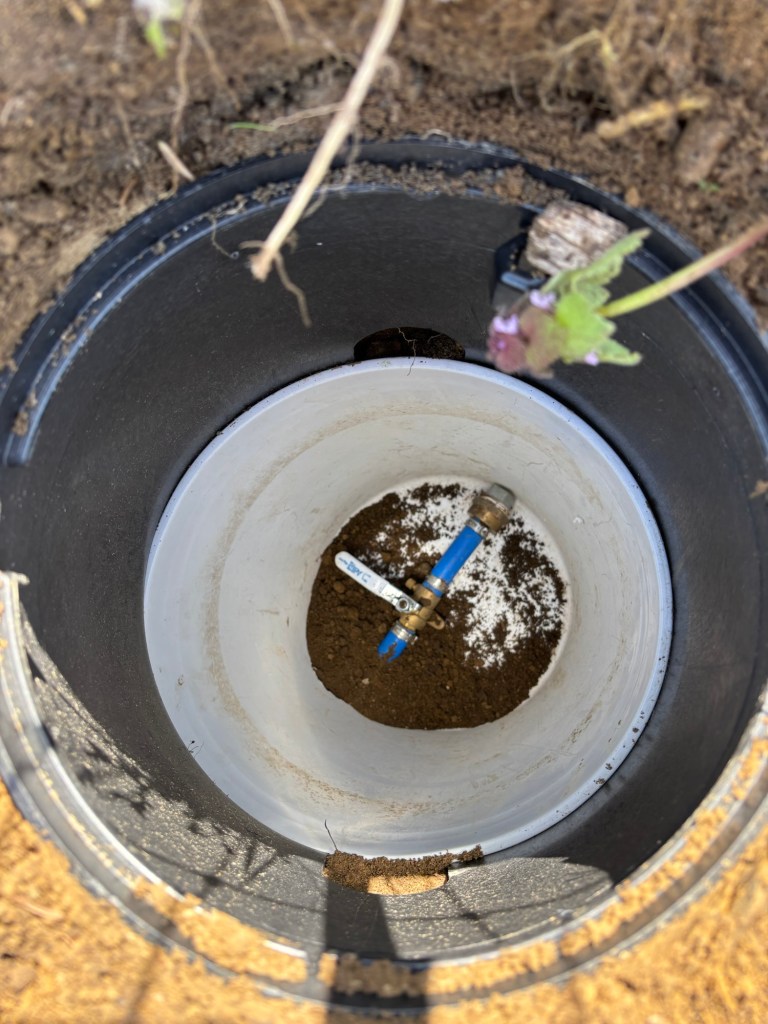 This is about 3 feet down, accessible through a valve cover, although it is so deep that it would be impossible to work on without digging it up. This is there in case we want to branch off this water line to extend out for whatever reason. Mostly because I had all the parts to do it, and so why not.