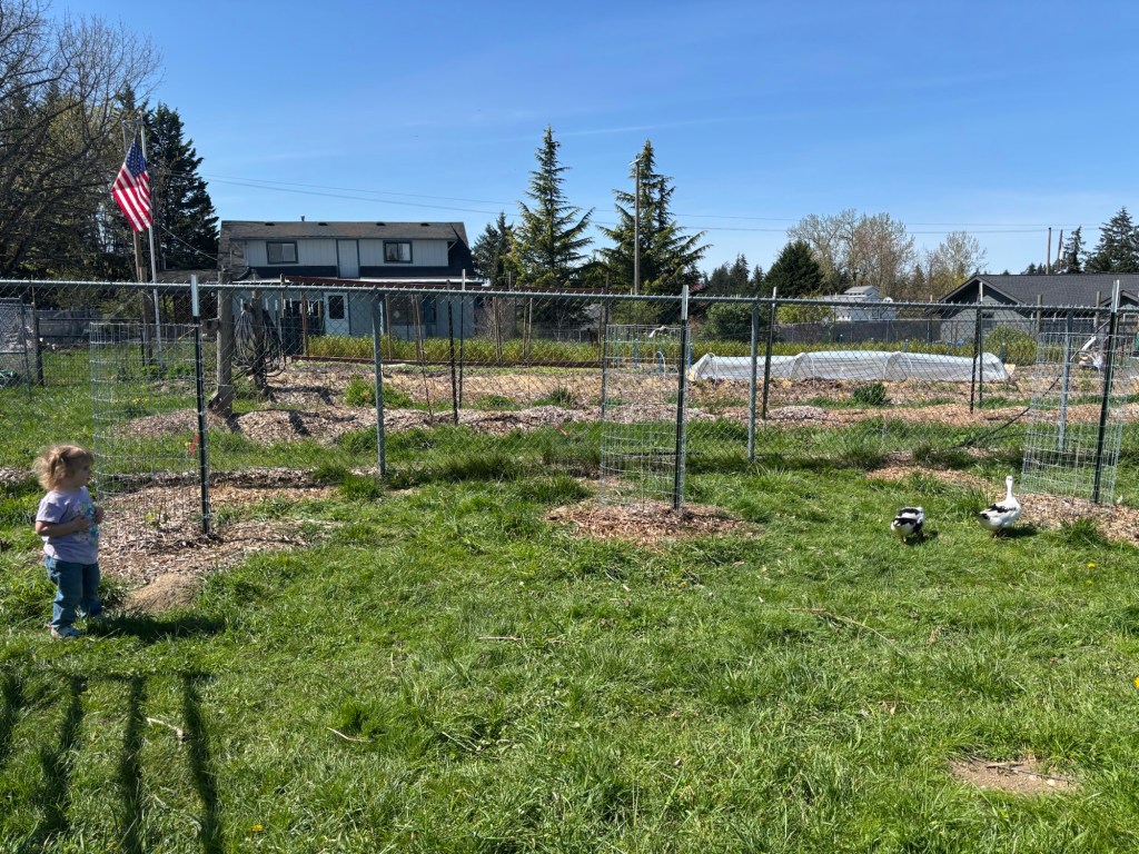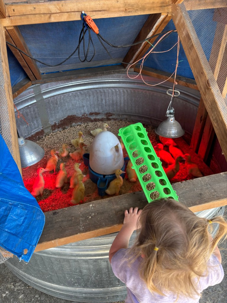 With their favorite Mama duck. Trust me, if these are not the fattest meat ducks you ever saw in 5 weeks, it won’t be for lack of feed. Winnie makes sure of that.