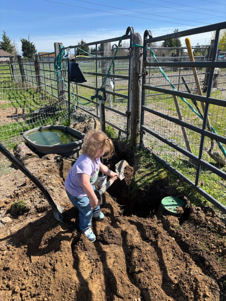 Ellie and Seppi took a break from scaling Mt. Woodchip to come help me plumb the new yard hydrant in the orchard. Ellie tried with all her might, but she is not quite strong enough to compress the pex pinch clamps.