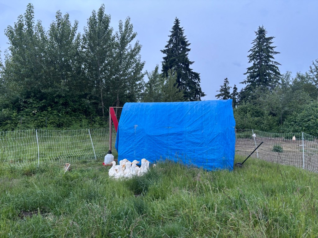 Butchering is scheduled for 5/29 and 5/31. Let us know if you want a duck.