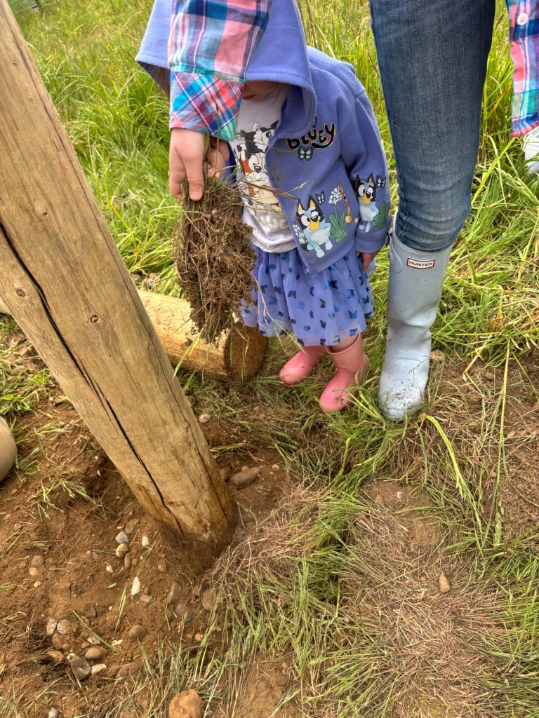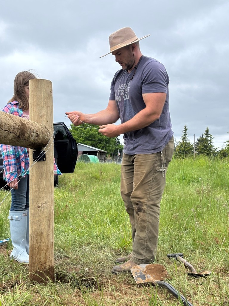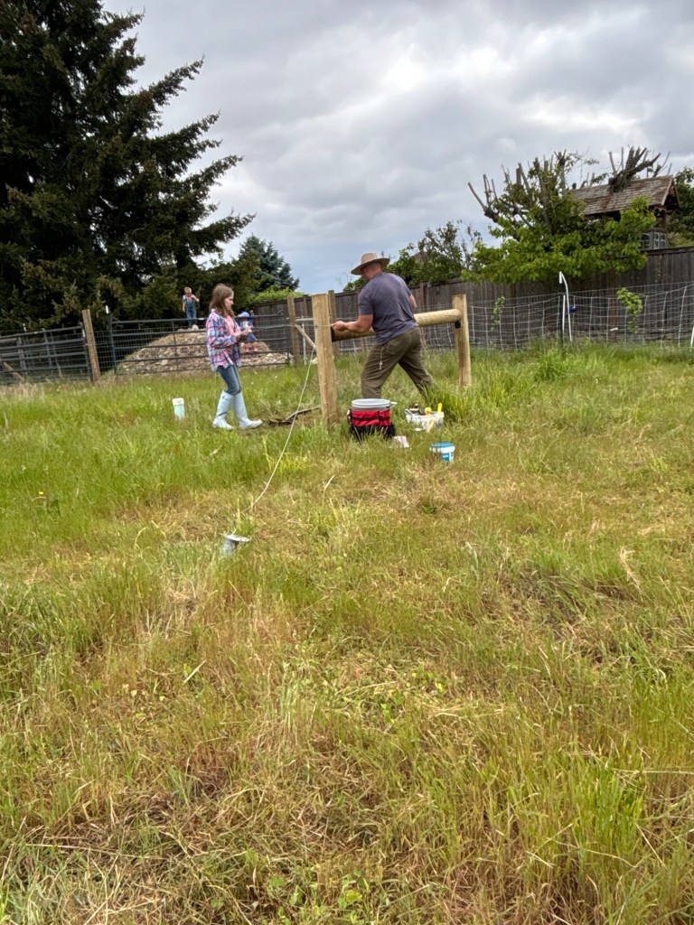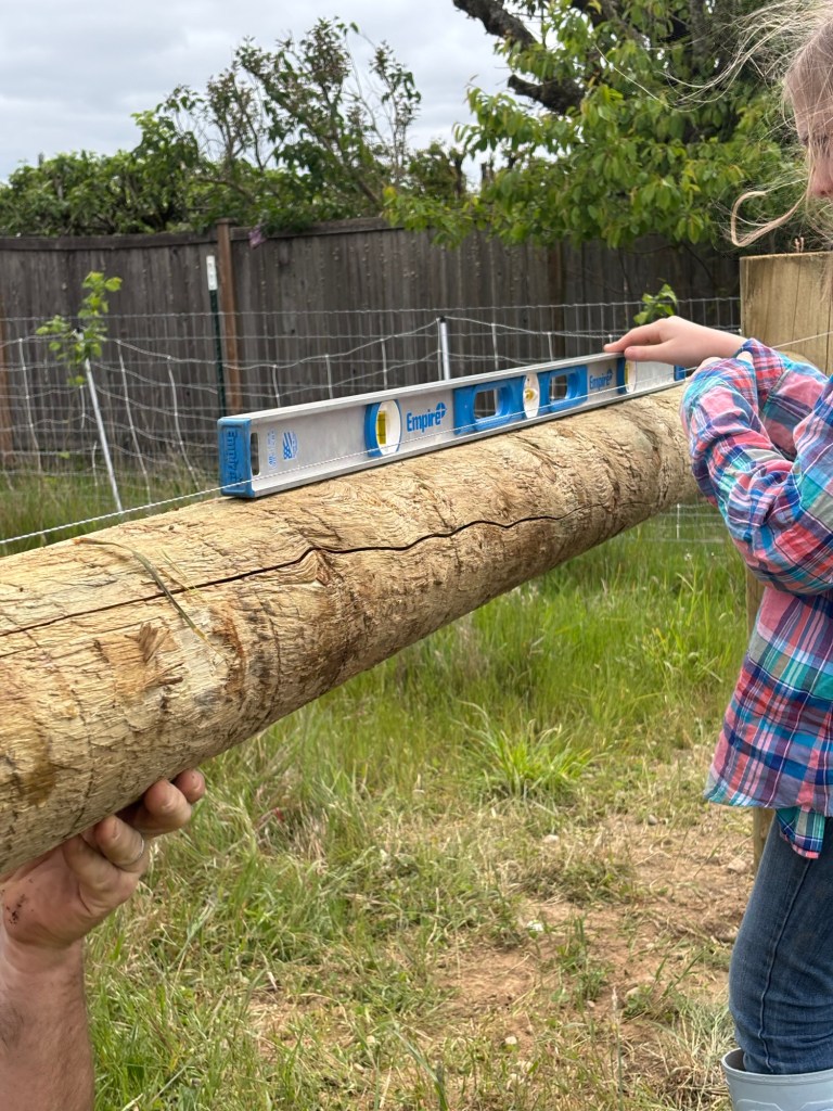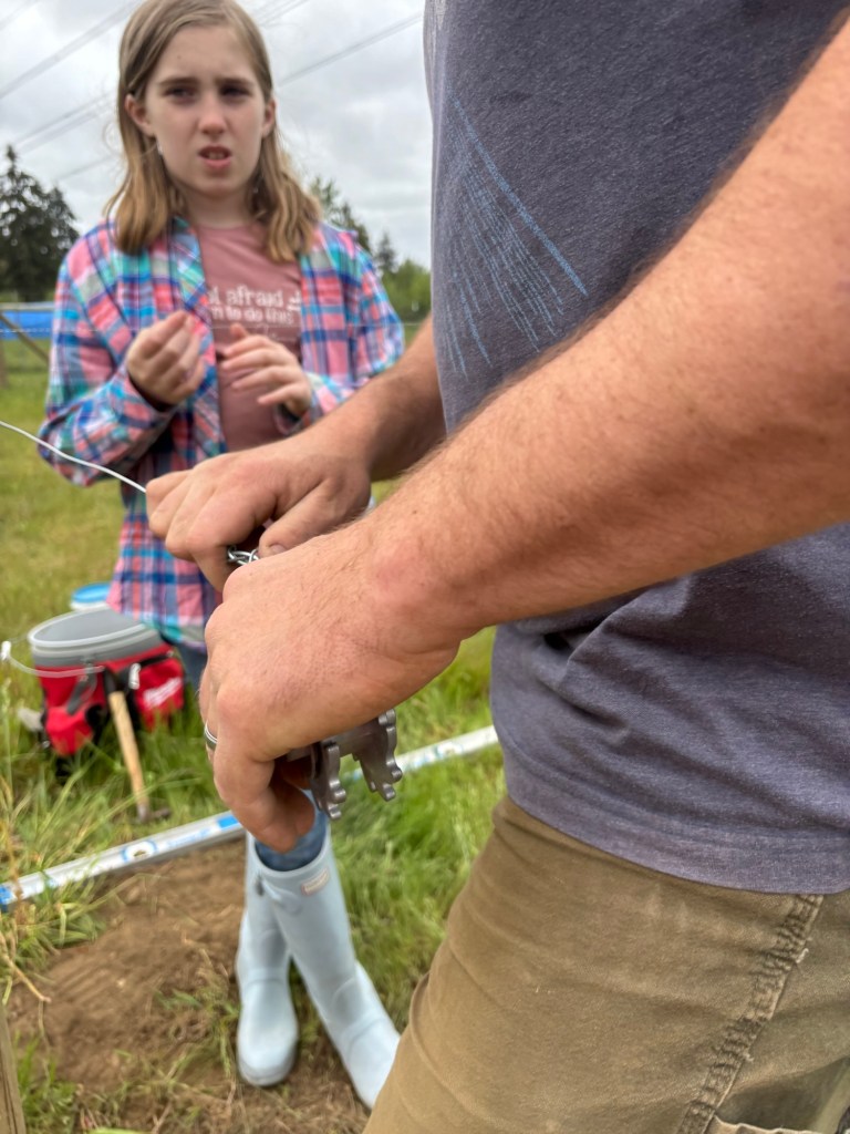The hole is carefully placed to miss the drainage line. This is why we put a 10 foot gate here instead of a 12 foot gate.