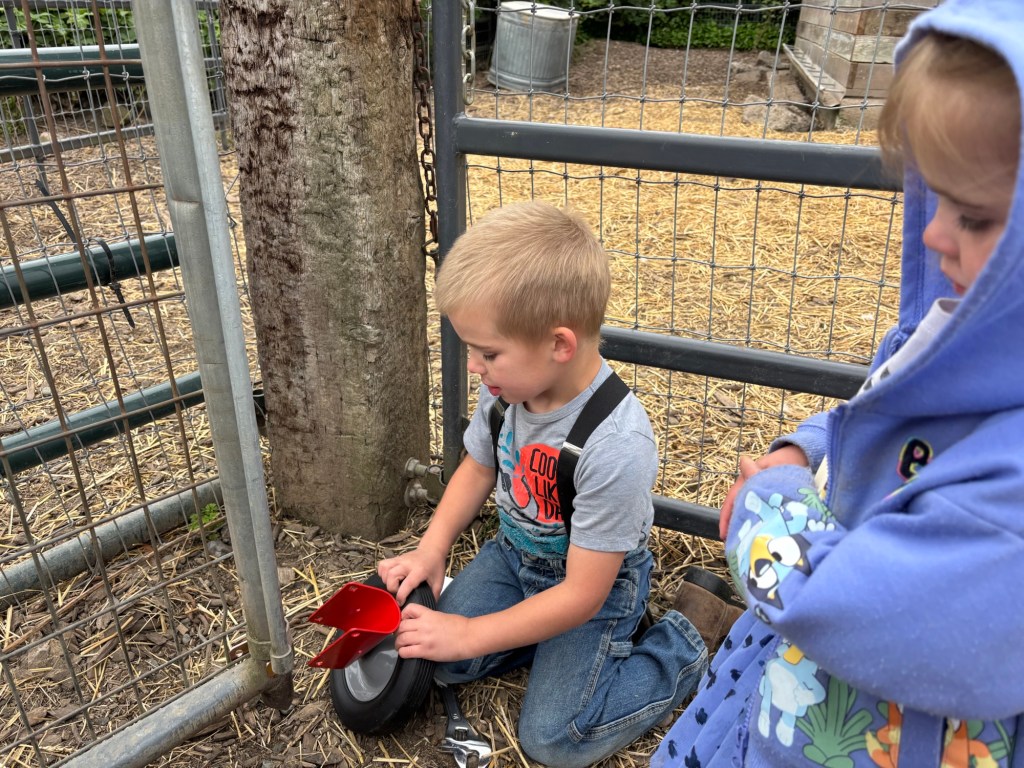 Oh yeah, the gate to the chicken yard now has a wheel! So cool!