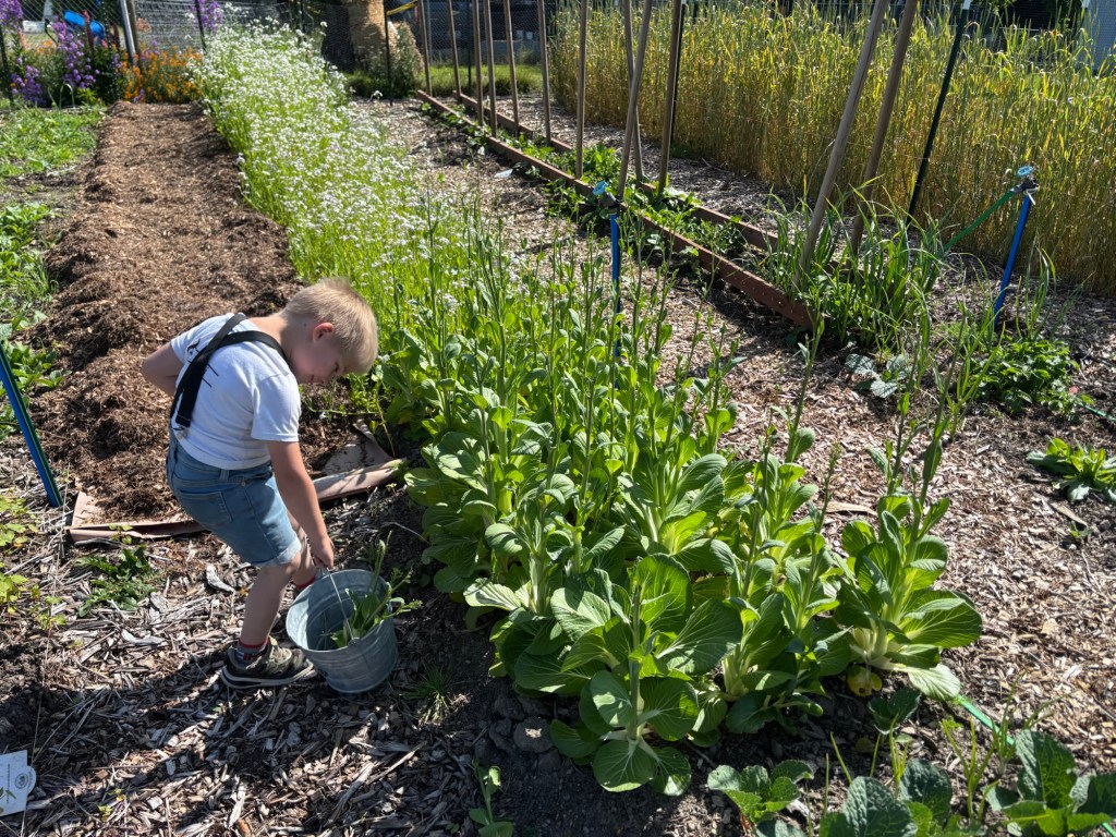 This is good. They attract bees. Last year the garden was buzzing with honeybees, but unfortunately they all died over the winter so this year the garden is not quite as buzzy, and it’s mostly bumble-bees. They work, though.