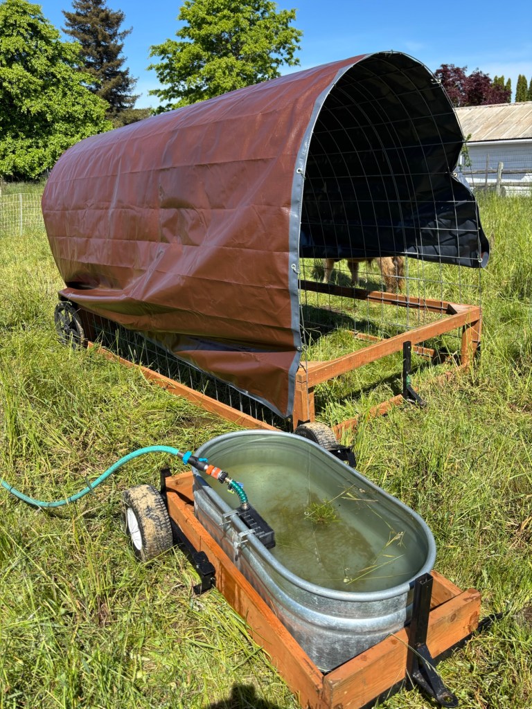 We need to be quick about fixing this especially since we are getting into the hot months and the cows/sheep are going to need some shade. This time, we want to get a tarp that is the right size so that doesn’t overlap the frame and wear through. We also want it to be detachable, not zip-tied in, so we can quickly take it off and put it back on if needed for wind storms.