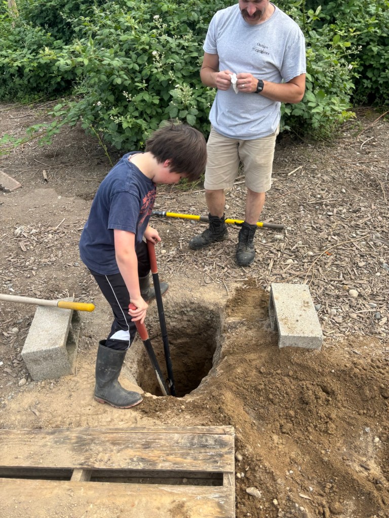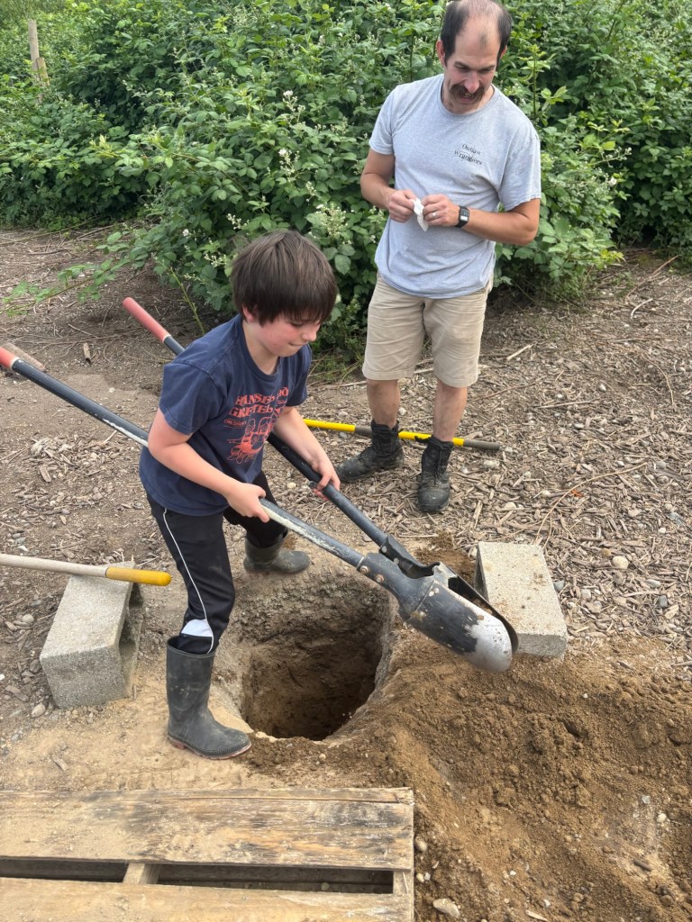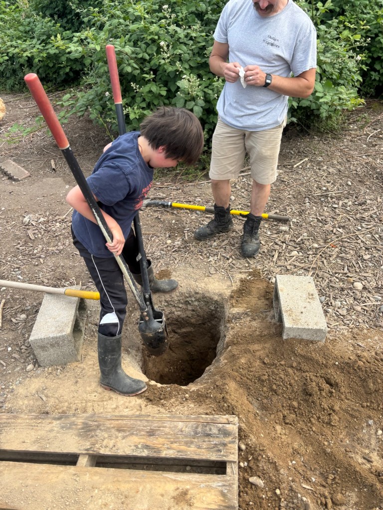 Edmund is a natural digger, but there are some finer points of setting a post he is not aware of. Unfortunately, it is going to be a few weeks before Uncle Ryan can get around to showing him how to set the post. The nuances of digging a post hole are not readily apparent unless you keep the end of the process in mind. Still, it’s pretty awesome that a 9-year-old can dig a hole 3 1/2 feet deep by himself with grown-up size hand tools.