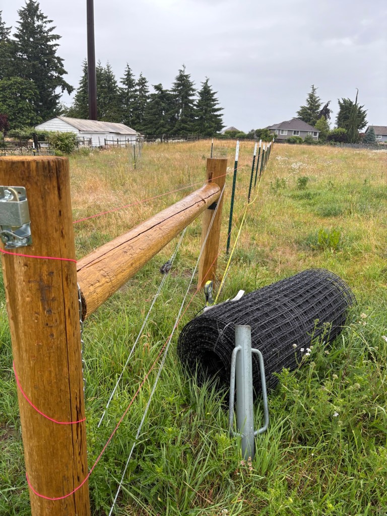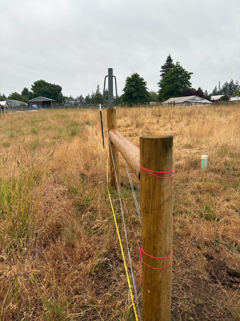 One note, all of the anchors have settled considerably in the weeks since we put them in. All the twitch wires are a bit slack and need to be cinched up tight before we stretch fence.
