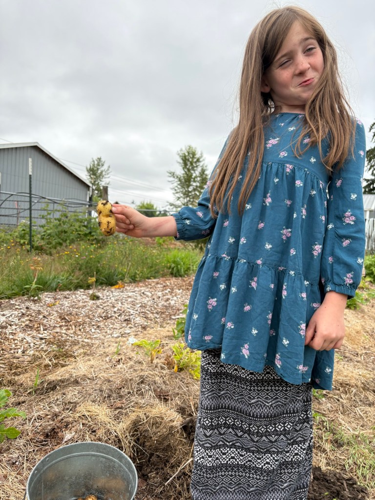 And dug new taters.
