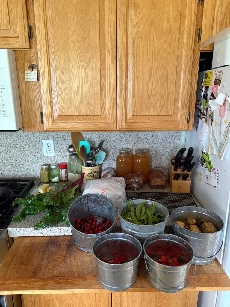 Oh, and picked peas, strawberries and raspberries, and brought some cider up from the basement.