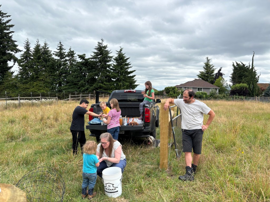 Mommy dropped off the rest of the kids after swimming lessons and we had a little picnic on the back of the truck.