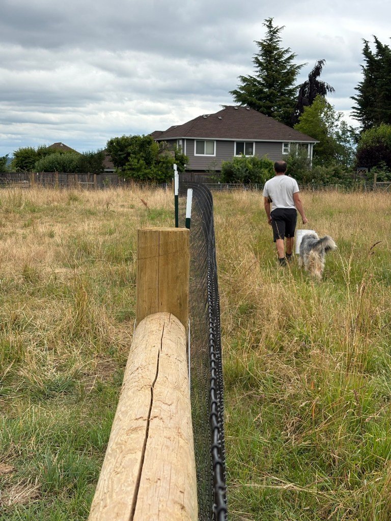 We are getting into the final stretch (get it?) of our North Pasture fencing project. Our friend Vincent came over to help us stretch it. He has never done any fencing before, but that did not prevent him from learning quickly and being a great help.