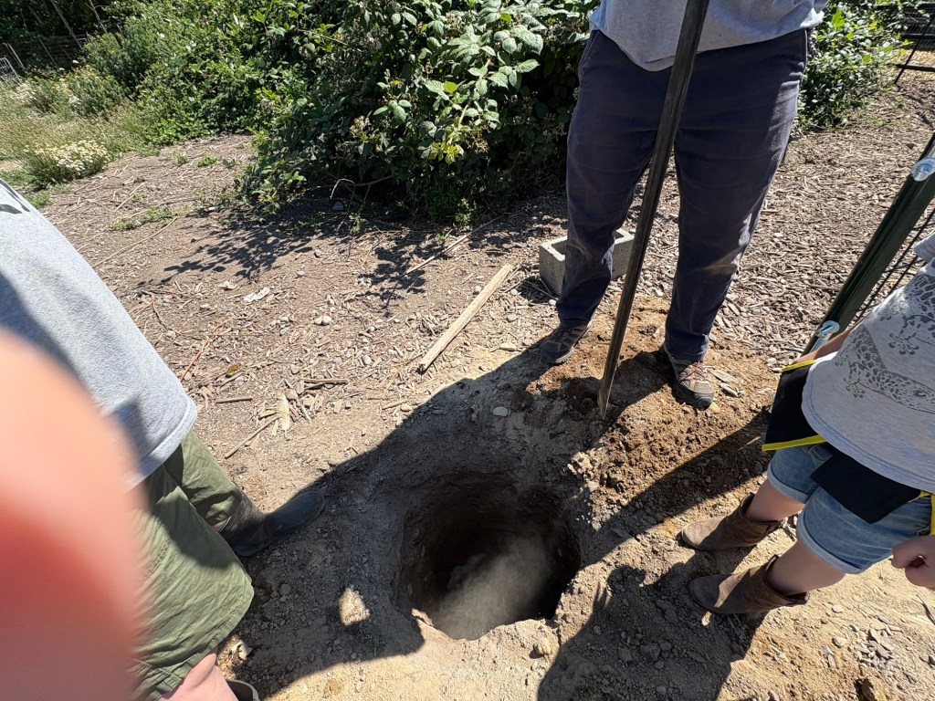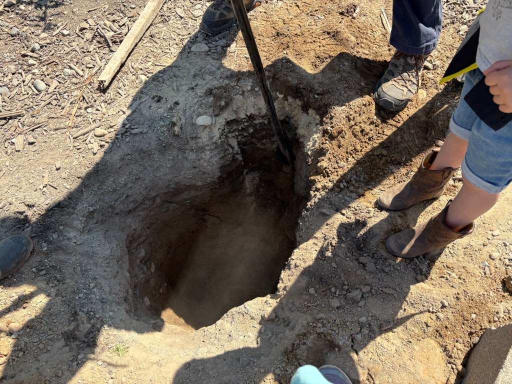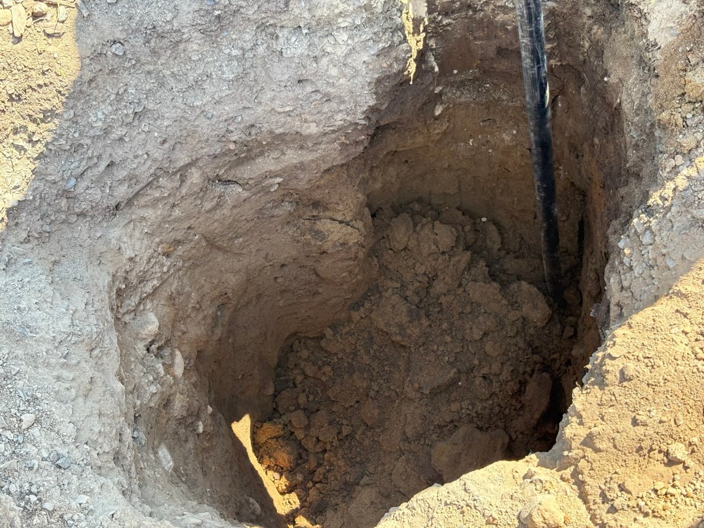 And then it took about 30 minutes or so to get it filled in. However, the soil here is very sandy and “fluffy.” It will take a long time to settle, especially without any rain during the summer. We will not be stretching a fence off of it for at least 5 months.