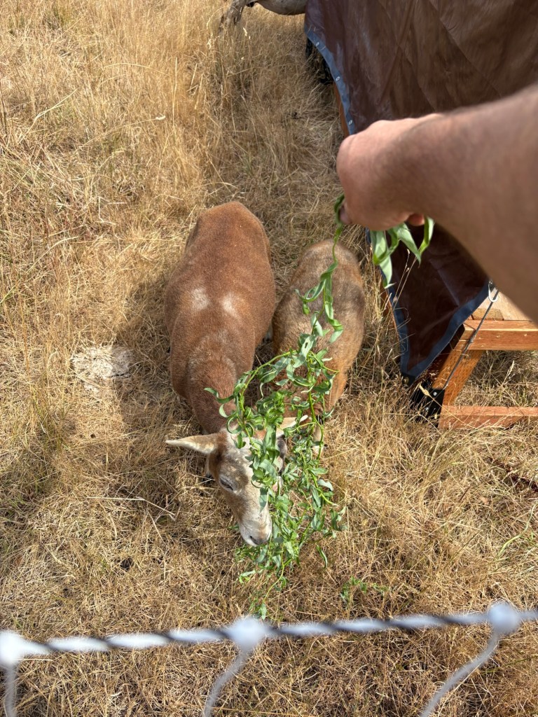 This is not strictly necessary because we are feeding them hay on pasture right now during the dry season, but it is nice to hang out with the cow and sheep for a little bit and it makes them more used to us and less skittish over time.